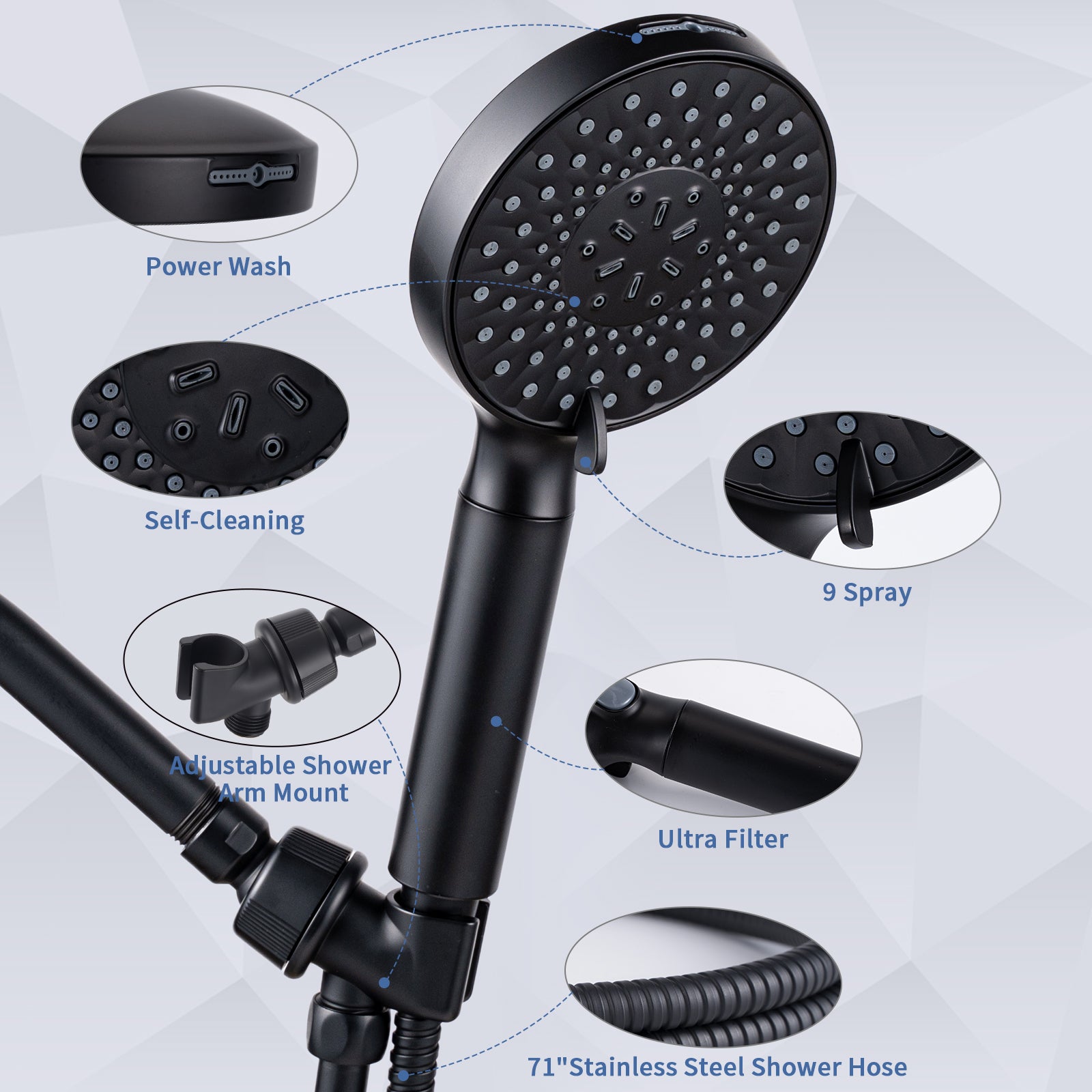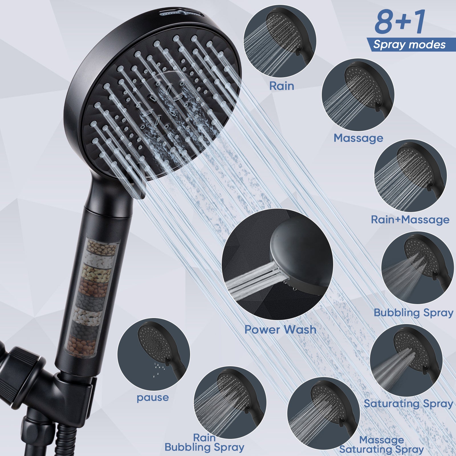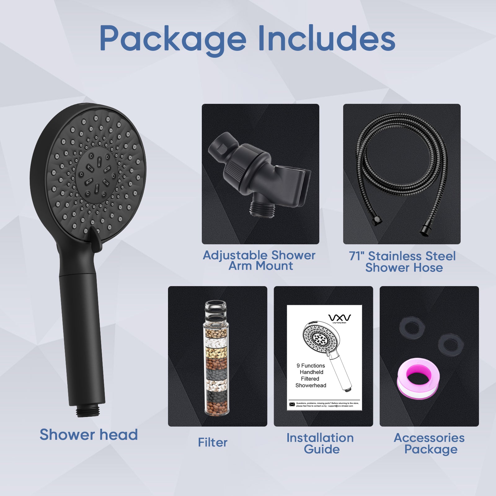 VXV Filtered Shower Head, 9 Modes High Pressure Shower Head with Handheld, with 71" Shower Hose & Adjustable Bracket Filter Shower Head, Remove Chlorine & Hard Water, Matte Black