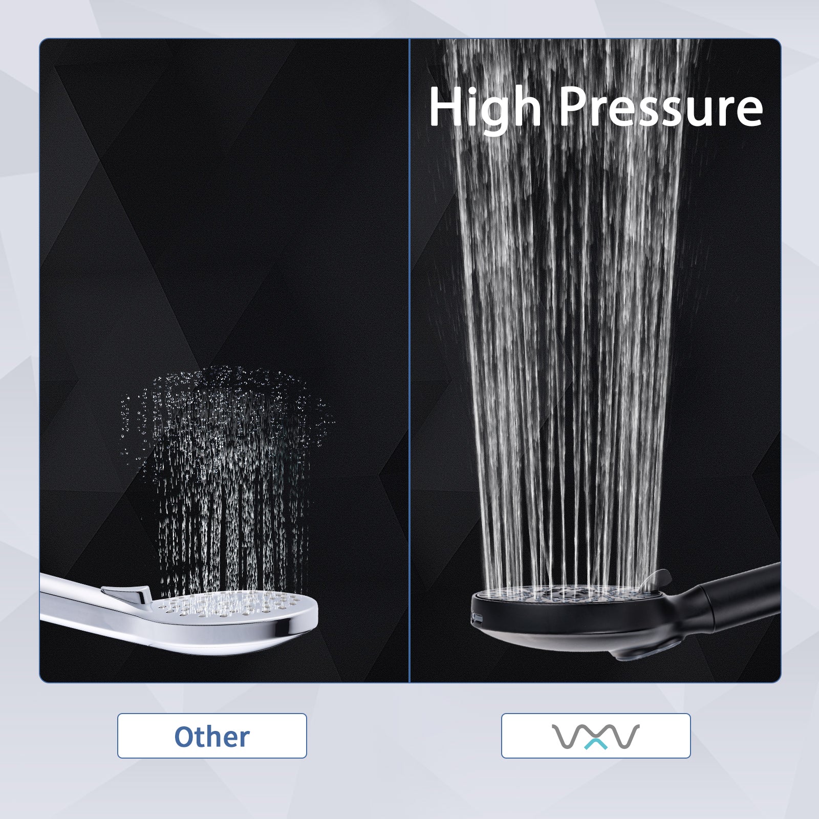 8+1 Spray Settings - VXV's handheld shower head offers an array of spray modes, from soothing mists to invigorating massages. Easily switch between modes with the rotation. Plus, enjoy a powerful cleaning mode to effortlessly tackle residue on tubs, tiles, and corners.