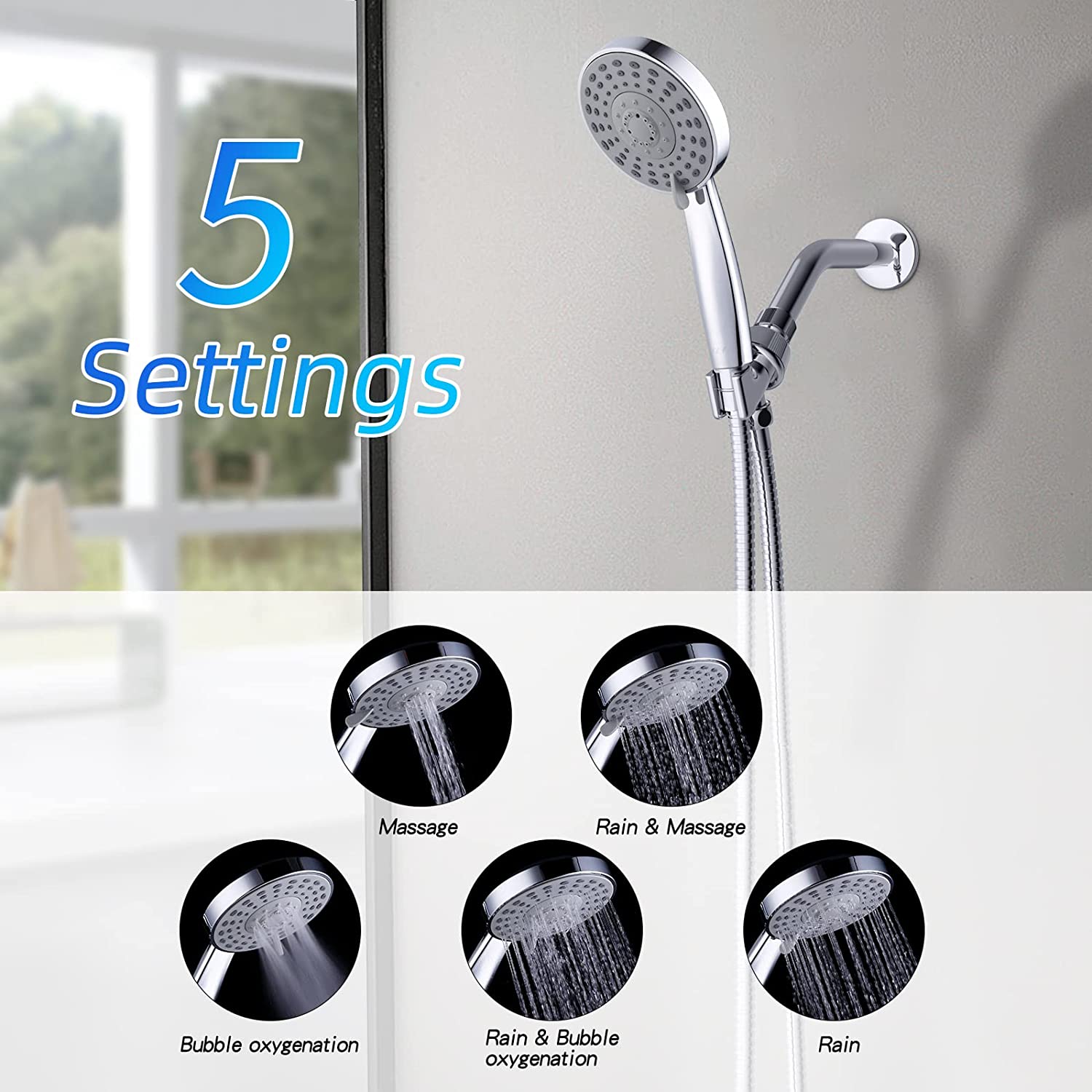 - 5 Functions Sprayer Settiing: Advanced removable handheld showerhead with hose provides five sprays experiences: Rain, Massage, Bubble Oxygenation, Rain & Massage, Rain & Bubble Oxygenation modes. massage spray targets sore muscles to ease away aches and pains.