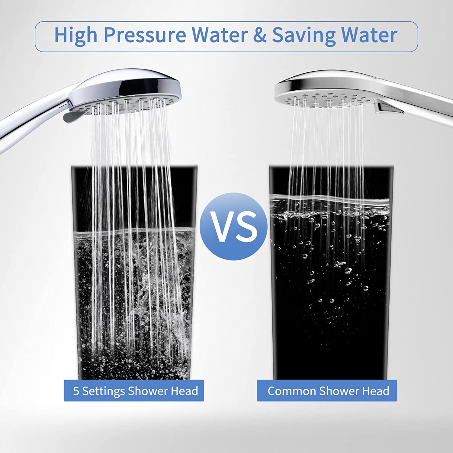 - High Pressure Shower Head: This shower head hand-held attach hose has revolutionary micro nozzle technology to increase the speed of water flow, increasing the water pressure and the thumb tab allows for a smooth transition between sprays.(Note: If you need higher water pressure during the shower. You can remove the flow restrictor inside the shower head.)