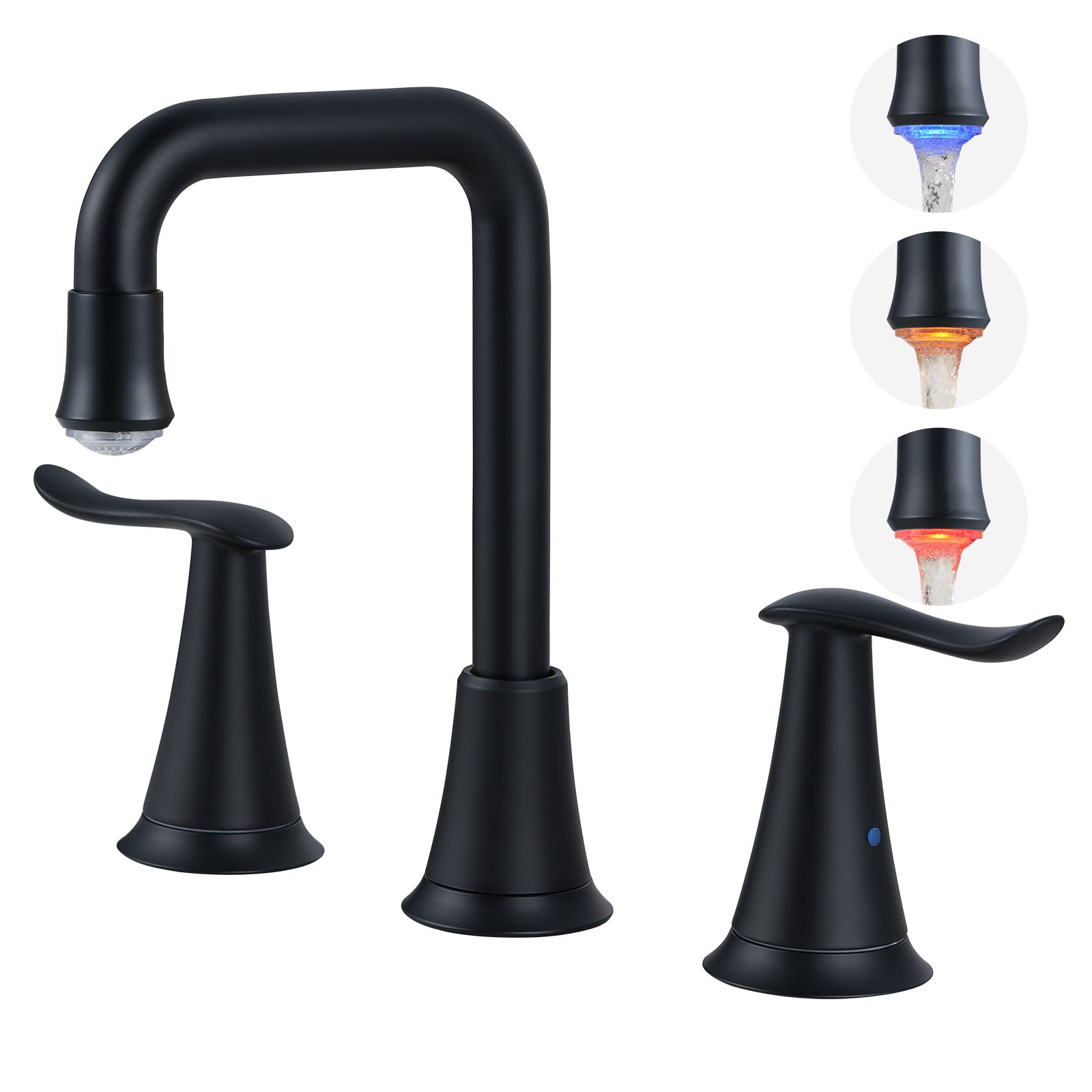 VXV Widespread Bathroom Faucet 360° Swivel Spout 8 inch 3 Hole LED Sink Faucet with Drain Assembly Black Bathroom Faucets Matte Black