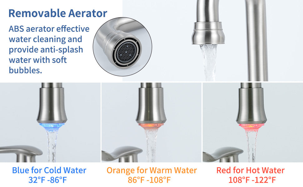 - The removable bubble aerator can help you conserve water and give you ample soft foaming clean water beneath the spout with no splash everywhere. It can be replaced directly with your hands if you don't need to use it.