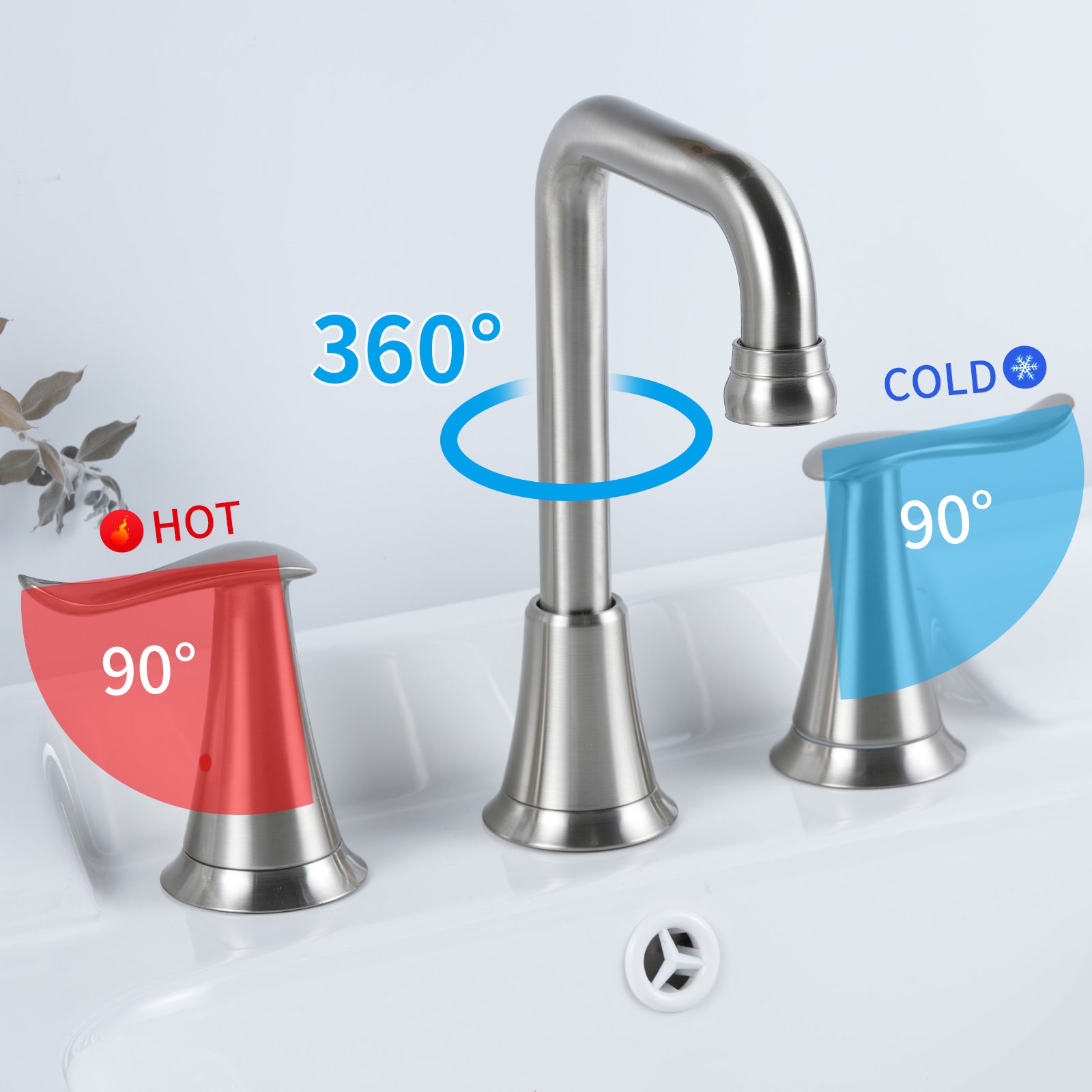 VXV Bathroom Sink Faucet 4 Inch 2 Handle Centerset Lavatory Vanity Faucet Modern 360 Rotating Black Bathtub Water Tub Faucet with Pop-up Drain Stopper Assembly and Supply Lines Fit 2 or 3 Hole